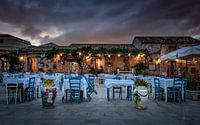 Avondplein van het dorpsplein op Marzamemi op Sicilie