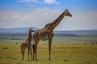 Masai-giraffe met jong van Peter Michel