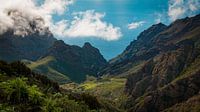 Uitzicht over een kloof op Tenerife naar de Atlantische Oceaan