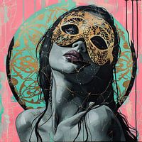 Masked Elegance Array - moderne portretvrouw met goud masker