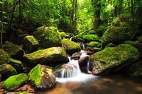 Prachtige opname van het tropisch regenwoud van Masoala in Madagaskar, een eiland in de Indische oceaan ten oosten van Afrika, met groene jungle en een riviertje