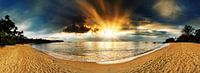 Prachtige 180 graden panorama van de zonsondergang aan het strand van Masoala op het eiland Madagaskar, een eiland ten oosten van Afrika in de Indische oceaan
