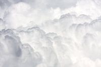 Een gigantische voorkant van massieve wolken drijven door de lucht. De witte, met donkere schaduwen, cumulonimbus of stapelwolken zien er indrukwekkend uit. De wolken voorspellen koude regen en wind.