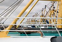 Masten van visboten in een haven