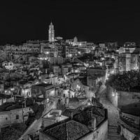 Matera, zicht op de 'Sassi di Matera' in het donker. gefotografeerd in ZwartWit