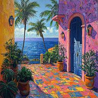 Kleurrijke koffieNiklas Maximilian Saint-Tropez haven pastelNiklas Maximilian