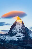 Wolk over de Matterhorn bij zonsopgang, Wallis, Zwitserland.