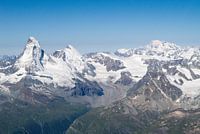 De beroemde bergen Matterhorn en Mont Blanc op één foto, genomen vanuit de lucht. De Walliser Alpen.
