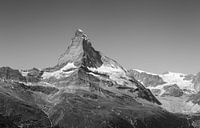 De berg Matterhorn tekent spits af tegen de lucht boven Zermatt in de zwitserse Alpen.