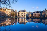 Tijdens een strakblauwe winterdag maakte ik deze foto van de skyline van Den Haag met op de voorgrond het Mauritshuis, Torentje en Binnenhof, en op de achtergrond de moderne architectuur. Als je goed kijkt, zie je dat de reflectie niet in de Hofvijver is. De spiegeling is tot stand gekomen door gebruik te maken van een regenplas aan de Lange Vijverberg. ;)