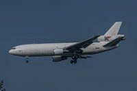 McDonnell Douglas DC-10, met registratie C-GKFD van het Canadese KF Cargo, vlak voor de landing bij de luchthaven van Brussel gefotografeerd.
