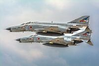 Twee door Mitsubishi Heavy Industries in licentie gebouwde vliegtuigen van het type F-4 Phantom II zijn opgestegen. De toestellen zijn van het squadron 302 Hikotai dat in 2014 gestationeerd was op Hyakuri Air Base in Japan.