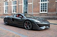 McLaren 570S rijdt op een straat in de stad. De auto wordt aangedreven door een 3,8-liter twin-turbo V8-motor die 562 pk produceert.