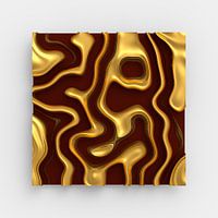 3D-rendering/raytracing met een wit oppervlak waarop zachte structuren van donkerrode en gouden vlakken een meanderend patroon vormen.