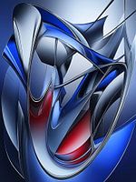 Dit werk vangt de essentie van futuristische complexiteit en strakke vormgeving. In dit werk ontvouwt zich een stalen bloemachtige structuur, waarbij de lijnen en curves elkaar kruisen en vermengen in een harmonieuze maar krachtige compositie. De kleuren rood, blauw en zilver, gecombineerd met het gepolijste metalen oppervlak, geven het geheel een mechanische en toch organische uitstraling.