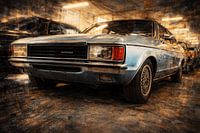 Stedelijk-abstracte fine art bewerking van een voertuig met een achtergrond in hoge resolutie, meervoudige belichtingen en schilderachtige structuren. Tijdloze, moderne kunststijl met een rustig motief in het midden en een dynamische omgeving.