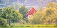 Het Zuid Limburgs Landschap in Nederland is schitterend in het voorjaar. Dit mooie vakwerkhuis staat in Mechelen vlakbij het riviertje de Geul. Een heerlijk sfeervolle plek.