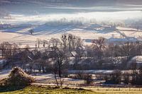 Heldere zonsopkomst op een zonnige winterdag met een vleugje sneeuw