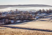 Uitzicht over het Zuid-Limburgse Heuvelland vanuit Mechelen richting Epen op een winterse ochtend