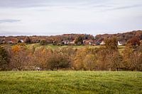 Met dauw bedekt weiland op een koude herfstochtend in het Zuid-Limburgse Heuvelland tussen Mechelen en Epen (Nederland)