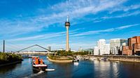 Mediahaven Düsseldorf Rijn met TV-toren en Gehry-gebouwen Vrachtschip