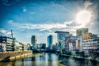 Architectuur in de mediahaven van Düsseldorf Rijn Duitsland tegenlicht