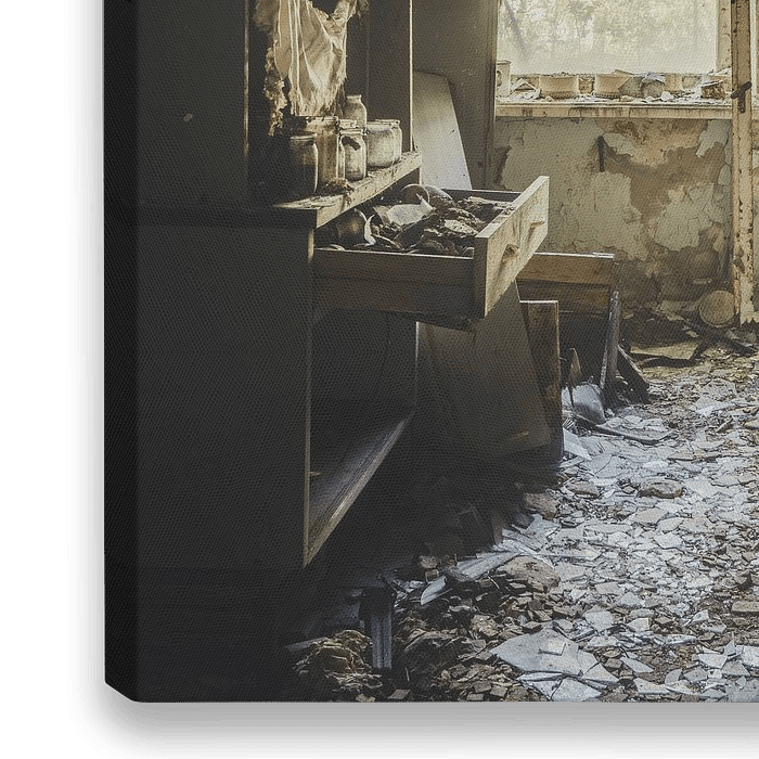 Dit was de opslag van een ziekenhuis in Tsjernobyl. Een klein donker kamertje met medicijnen.