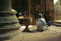 Koop dit stilleven Meditatie in Preah Khan tempel, Angkor Wat, Cambodja van Sven Wildschut op canvas, aluminium dibond, (ingelijste) fotoprint, behang en ArtFrame, op maat geprint in Fine-Art kwaliteit.