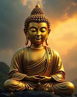 De subtiele verlichting benadrukt de contouren van het beeld en laat het bijna zweven in de lucht, alsof het omgeven is door spirituele energie. Deze minimalistische compositie nodigt de kijker uit om even stil te staan en bij zichzelf naar binnen te kijken. Het creëert een sfeer van contemplatie die aanzet tot reflectie en innerlijke rust. Dit beeld legt niet alleen de fysieke aanwezigheid van de Boeddha vast, maar ook de essentie van vrede en verlichting die hij belichaamt - een uitnodiging om na te denken en op zoek te gaan naar innerlijke balans.