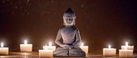 Mediterende Boeddha met kaarslicht van Alexander Baumann