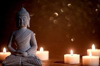 Mediterende Boeddha met kaarslicht van Alexander Baumann