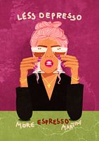 Deze kleurrijke illustratie met spreuk van een vrouw met twee espressomartiniglazen is een echte blikvanger voor je huis en brengt vrolijkheid, humor en lichtheid.