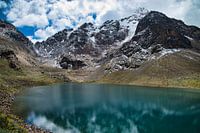 Meer en bergen bij Punta Olimpica, Andes, Cordillera Blanca, Huaraz, Peru. Foto is genomen op 4700m, na Punta Olimpica door de tunnel. Bijna bij de sneeuwgrens. Indrukwekkend mooi. Let op de kleuren van het water: de groene en turquoise tinten.