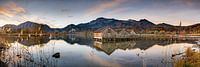 Meer in de Alpen in Beieren met drie boothuizen. van Voss fotografie