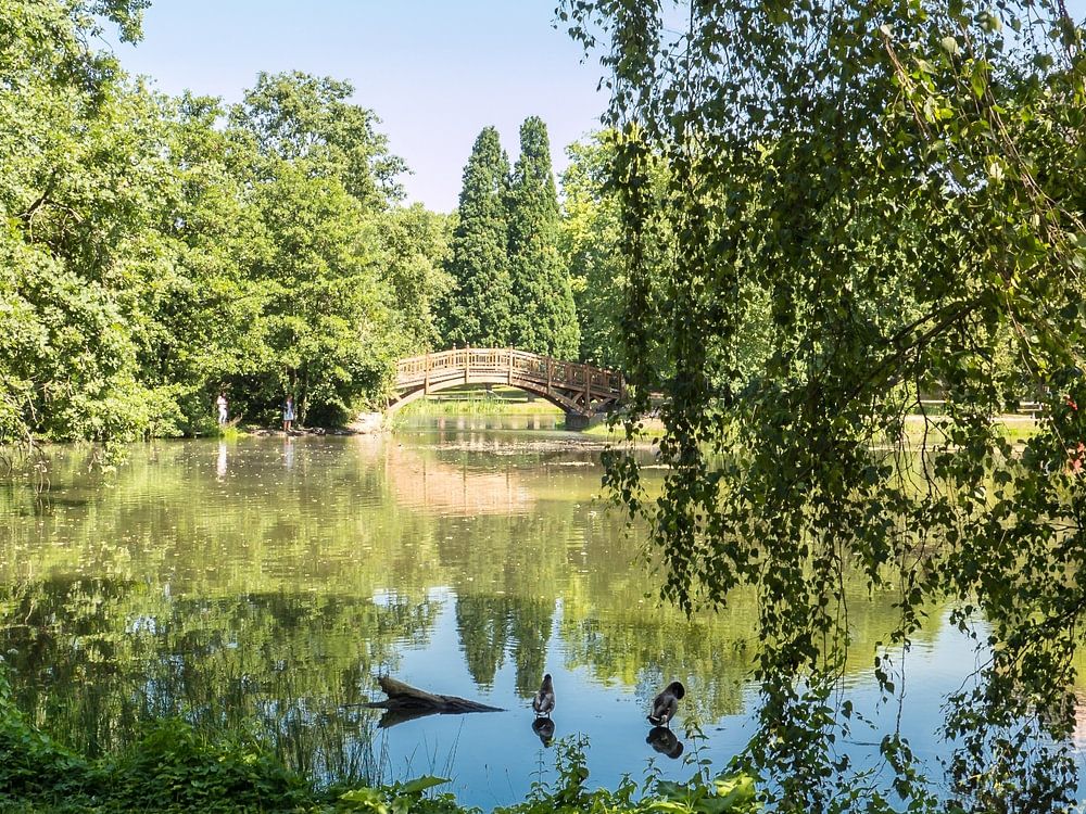 Johannapark in Leipzig met een klein meertje in het parkgebied