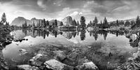 De bergen Lagazuoi en Tofana di Rozes en de Hexenstein (heksenrots) en Monte Averau worden schilderachtig weerspiegeld in het water van het meer.