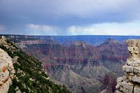 Meer regen op komst tijdens een verblijf in Grand Canyon National Park, Arizona, USA. Ook al hebben we tot nu toe geen regen gehad, de omstandigheden zagen er zeker slecht uit voor ons om getuige te zijn van een fatsoenlijke zonsondergang. We hielden wel van de dramatische uitzichten die de donkere wolken met zich meebrachten.