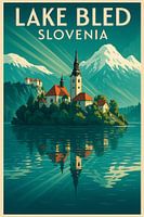 Dit op vintage geïnspireerde kunstwerk vangt de tijdloze schoonheid van het meer van Bled in Slovenië, een van de meest betoverende natuurlijke bezienswaardigheden van Europa. De poster benadrukt het serene alpenmeer met zijn beroemde eilandkerk, omringd door weelderige bossen en omlijst door de dramatische achtergrond van besneeuwde bergen. De reflectie op het stille water voegt een extra laag magie toe, waardoor dit stuk een elegante herinnering is aan de natuurlijke wonderen van Slovenië. Ontworpen in een retro Art Deco stijl, mengt de afbeelding nostalgische charme met modern minimalisme, perfect voor verzamelaars van reisposters en liefhebbers van Europese landschappen. Of je Slovenië nu hebt bezocht of ervan droomt om het sprookjesachtige landschap te verkennen, deze muurschildering creëert een gevoel van reislust en rust in elke ruimte. Afgedrukt met fijne details is het ideaal voor woonkamers, slaapkamers, kantoren of als een attent cadeau voor reizigers. Haal het iconische meer van Bled in huis en geniet van een tijdloos stuk Europese reiskunst.