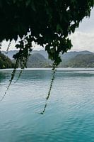 Reisfotografieprint van doorkijkje van het meer van Bled in Slovenië.