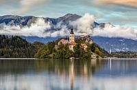 De Maria Tenhemelopnemingkerk ligt op een klein eiland midden in het meer van Bled in Slovenië. Rondom het meer rijzen de bergpieken van de Julische Alpen en de Karawanken.