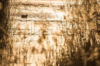 Deze meerkoet zwom nog even in het laatste licht. Prachtig om te zien! De meerkoet is gefotografeerd met de omgeving erbij om een beeld te creëren van zijn leefomgeving. Het riet zorgt voor een mooie omlijsting tijdens een fijne zonsondergang.