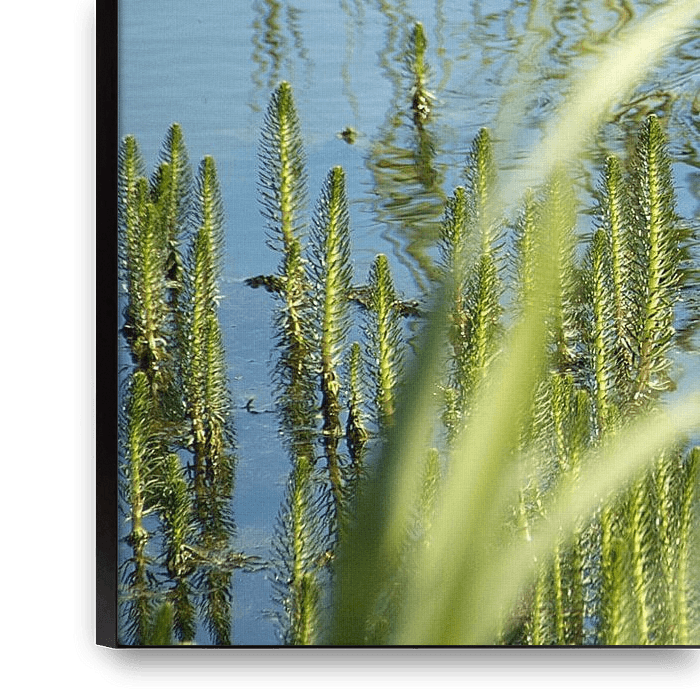 Ina Hölzel Fotografie. Het licht speelt door de waterplanten. Een rustgevende plaat aan de muur als poster of op doek. Een mooie natuurlijke uitstraling.