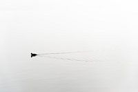 Meerkoet zwemt in het Haarlemmermeerse Bos te Hoofddorp op een mistige ochtend. Deze kleuren foto is bijna van nature zwart-wit.