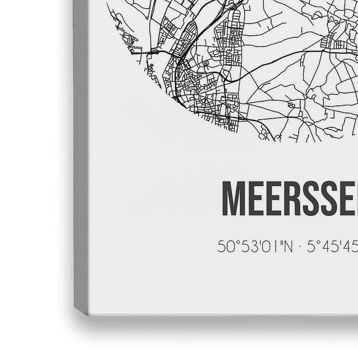 Zwart-witte landkaart, stratenplan of plattegrond van Meerssen. Meerssen is gelegen in de gemeente Meerssen, provincie Limburg. Op de stadskaart zijn alle openbare wegen in Meerssen opgenomen. Verder is de kaart voorzien van de coördinaten van het centrum van Meerssen.
