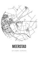 Zwart-witte landkaart, stratenplan of plattegrond van Meerstad. Meerstad is gelegen in de gemeente Groningen, provincie Groningen. Op de stadskaart zijn alle openbare wegen in Meerstad opgenomen. Verder is de kaart voorzien van de coördinaten van het centrum van Meerstad.