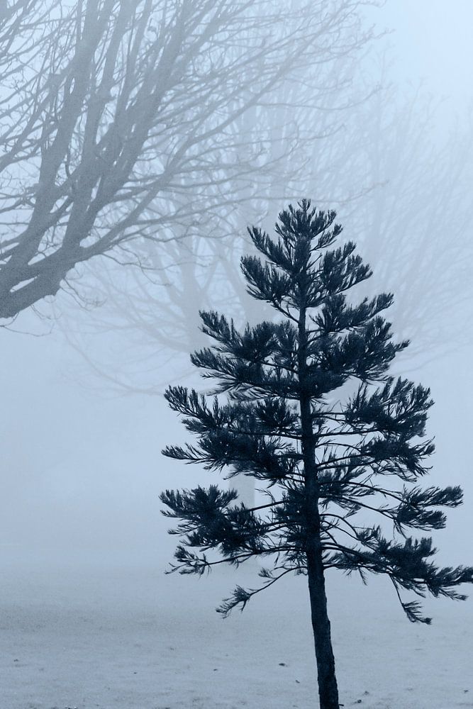 Een klein sparretje staat aangeplant tussen de grote bomen van het Leeghwaterpark in Purmerend. Het sparretje was ongeveer 2 meter hoog, aangeplant in een vers gat en dus nieuw in het park. Geen idee wat de gedachte hier was. Wel leuk dat kleine dennenboompje tussen de grote loofbomen. Het wil zeker meespelen met de grote jongens. Het was verder heel mistig in het park, wat bijdroeg aan de sfeer.