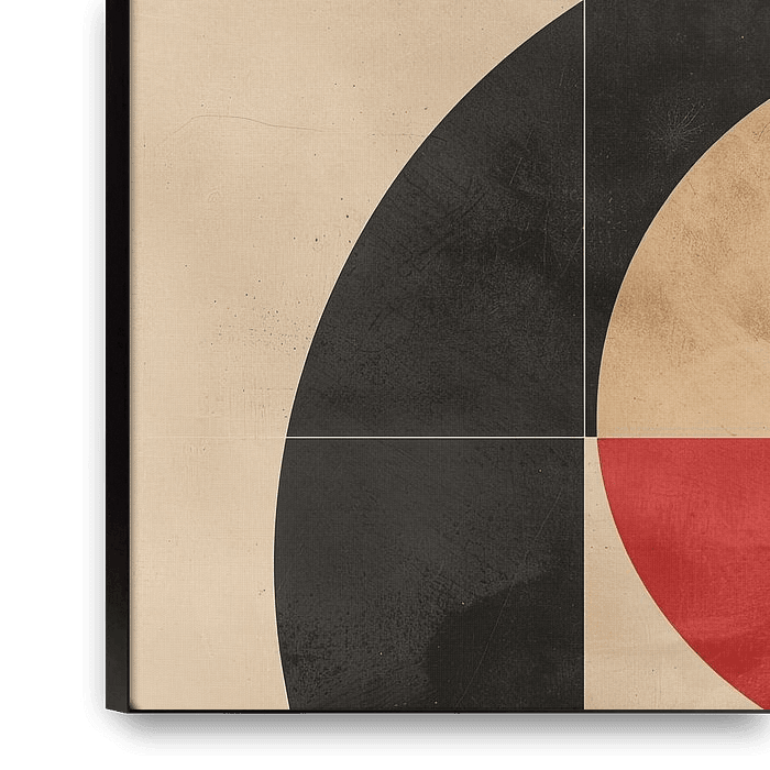 Dit abstracte kunstwerk maakt indruk met een dynamische combinatie van geometrische vormen en een harmonieus kleurenpalet. De precieze lijnen en vormen in zwart, rood en goud creëren een krachtige maar elegante compositie die diepte en beweging uitstraalt. Dit werk is ideaal voor moderne woon- en kantoorruimtes en geeft elk interieur…