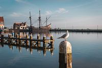 Waar kijken we naar? De meeuw de boten of... Het was een heerlijk rustige ochtend in Volendam waar de meeuwen zicht thuis voelen