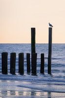 Een zeemeeuw op een golfbreker, aan de kust bij Domburg