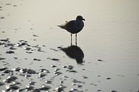 Meeuw aan het strand bij laag water, Callantsoog, Noord Holland